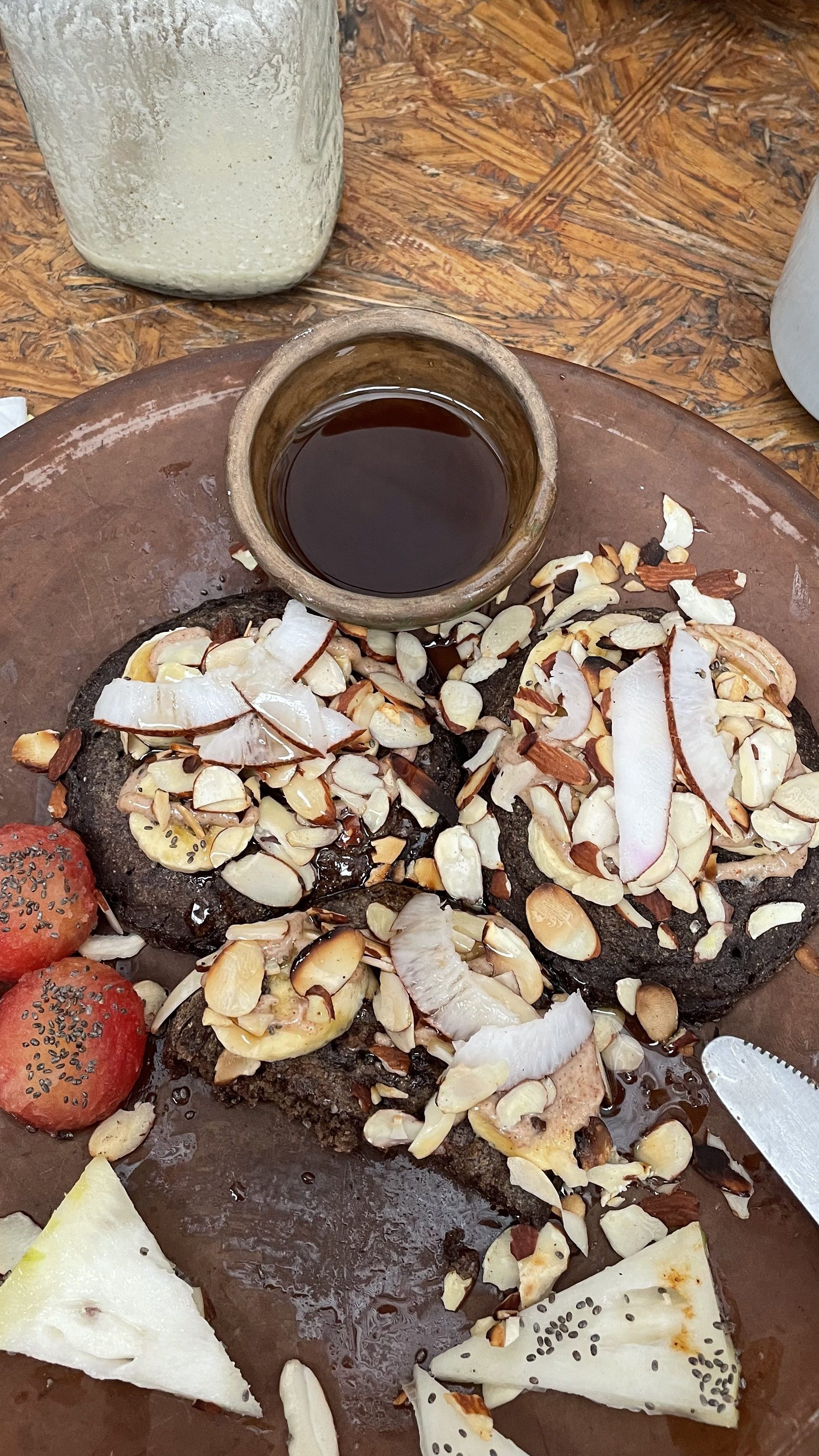 My love for cocoa banana pancakes began when I went to Nicaragua with my partner and some friends in November 2022. We stayed in San Juan Del Sur (SJDS) for the majority of the trip and went to the same breakfast spot 4 times! Now, as many of you know, finding gluten and dairy free options at restaurants can be challenging to say the least. At this cafe in SDJS called, Ding Repair Cafe, they had so many dairy and gluten free options, it was incredible. If you are headed to SJDS in the near future, you must eat here.